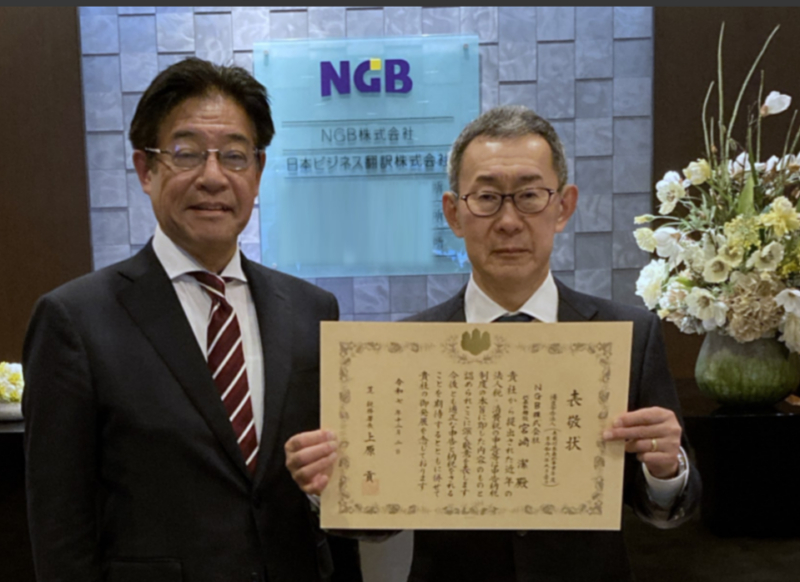 左:芝税務署長 上原 貢 様 右:弊社社長 宮﨑 潔