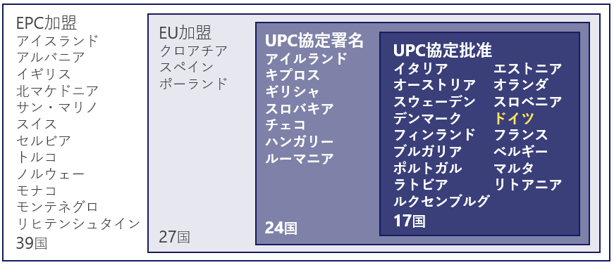 2023年2月20日時点でのUPC協定批准国は以下の通りであり、制度開始時点においても同じ17国となる見込みです。