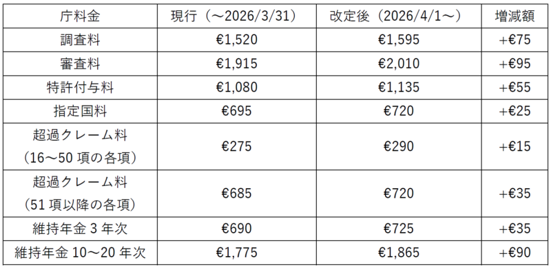2026年1月30日、欧州特許庁(EPO)は庁料金の改定を公表しました。本改定は、2026年4月1日以降の庁手続に適用されます。